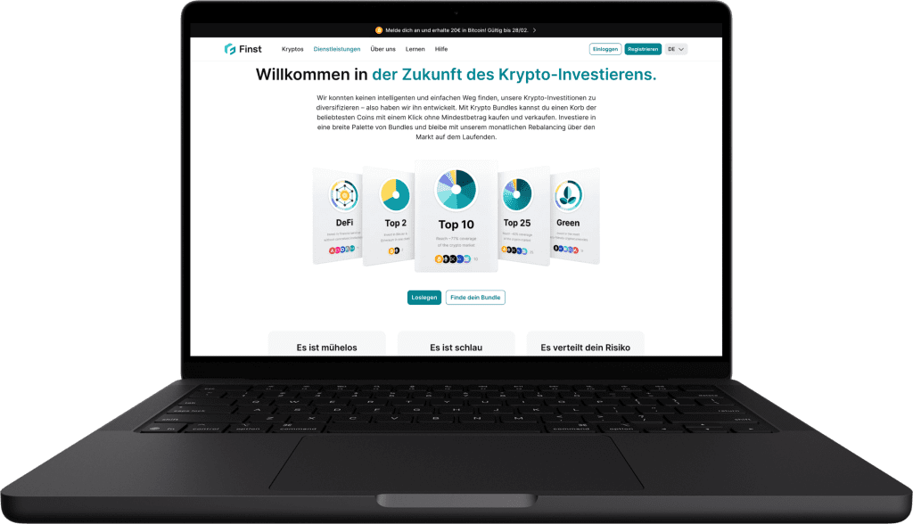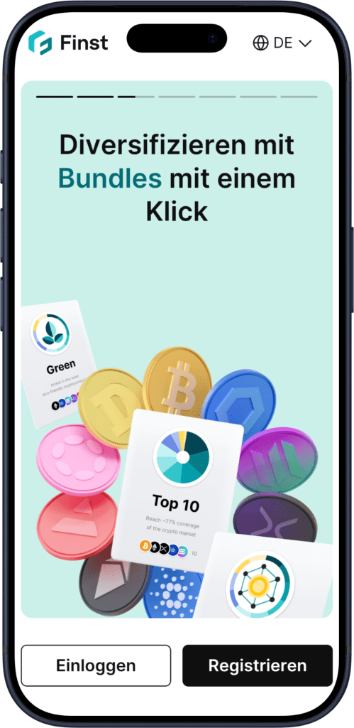 Bei Finst kann ich ganz einfach ein „Krypto-Korb” kaufen. Persönlich investiere ich über diese Krypto-Bundles auf einen Schlag in die Top 5 der größten Kryptowährungen. Für mich funktioniert das hervorragend.
