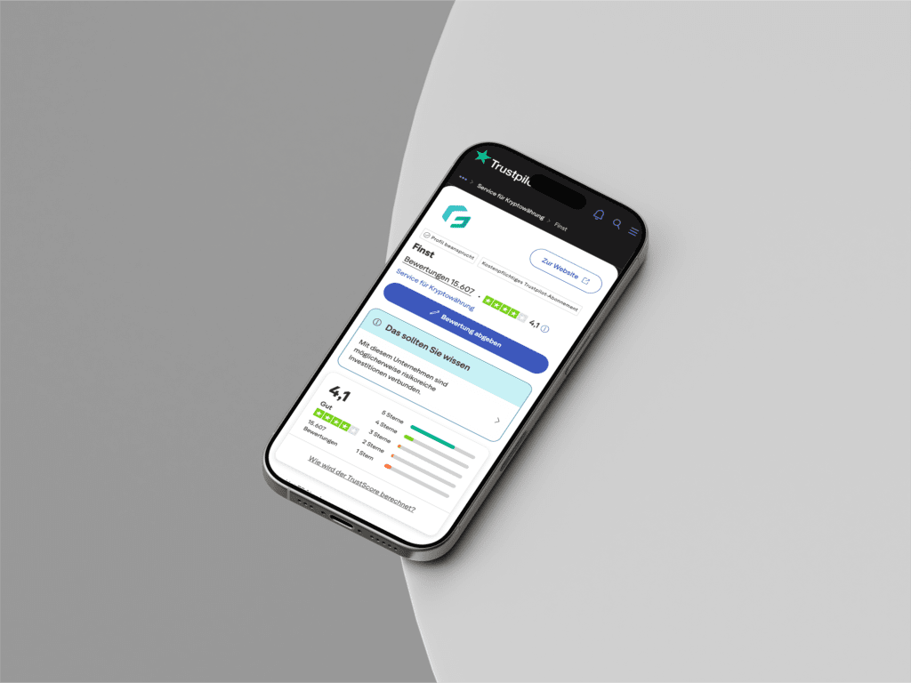 Finst bietet Nutzern ein nahtloses Erlebnis – von der Registrierung bis zum Handel – auf einer sicheren und benutzerfreundlichen Plattform. Mit einer soliden Trustpilot-Bewertung von 4.1 zeigt Finst, dass die Mehrheit der Kunden zufrieden bis sehr zufrieden ist.