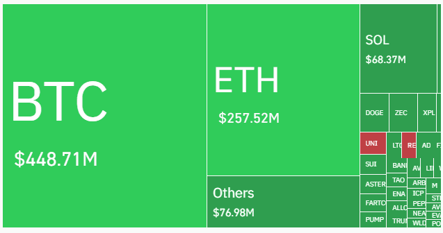 Der plötzliche Rückgang bei Bitcoin wirkt fast wie ein Reinigungsprozess. Über eine Milliarde US-Dollar an gehebelten Long-Positionen wurden heute früh liquidiert.