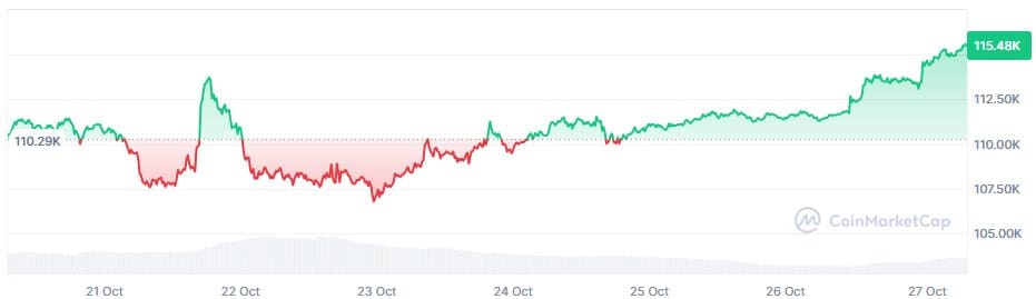 Und offenbar bin ich nicht allein mit diesem Gefühl: Bitcoin(BTC) schießt auf über 115.000 Dollar, Ethereum(ETH)legt über drei Prozent zu.