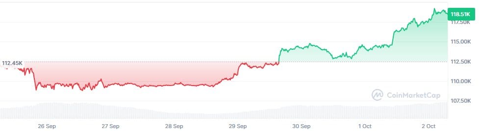 Der Oktober beginnt genauso, wie viele es erwartet haben – grün und mit Rückenwind. Ich beobachte den Markt täglich, und es ist spannend zu sehen, wie Bitcoin die 119.500 Dollar-Marke anpeilt.