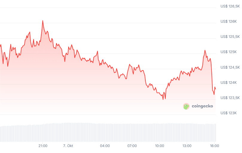 Der Rest des Kryptomarktes musste sich mit weniger zufriedengeben. So ist Bitcoin um 1,2 Prozent gefallen, nachdem es gestern erneut einen Preisrekord von 126.000 Dollar brach. Inzwischen ist der Kurs auf 123.546 Dollar gesunken, was keine unbekannte Entwicklung ist kurz nach dem Erreichen eines All-Time-Highs. Anleger sehen dies oft als den idealen Moment, um Gewinne zu realisieren, und auch diesmal ist das der Fall laut technischem Analysten Ali Martinez.