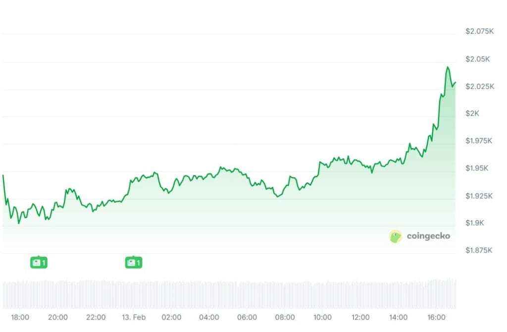 Auch Ethereum (ETH), XRP, BNB und Solana stehen endlich wieder im Plus. Ethereum notierte heute sogar einen Kursanstieg von gut 4 Prozent, wodurch es momentan über 2000 Dollar liegt.