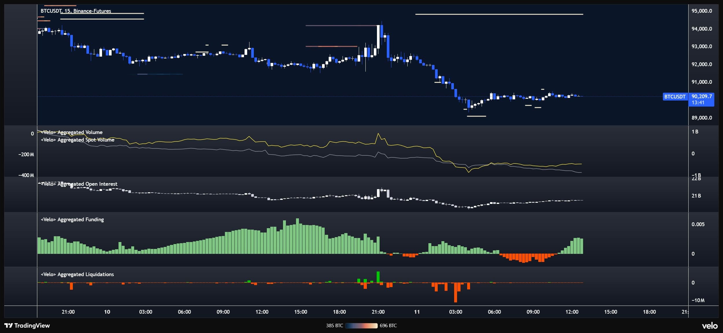 Kurz nach dem Squeeze kam es zu gut sichtbaren Long-Liquidationen – die Quittung für den zuvor überzogenen Optimismus. Der klassische Ablauf: Erst ein Short-Squeeze nach oben, dann eine scharfe Bereinigung nach unten.