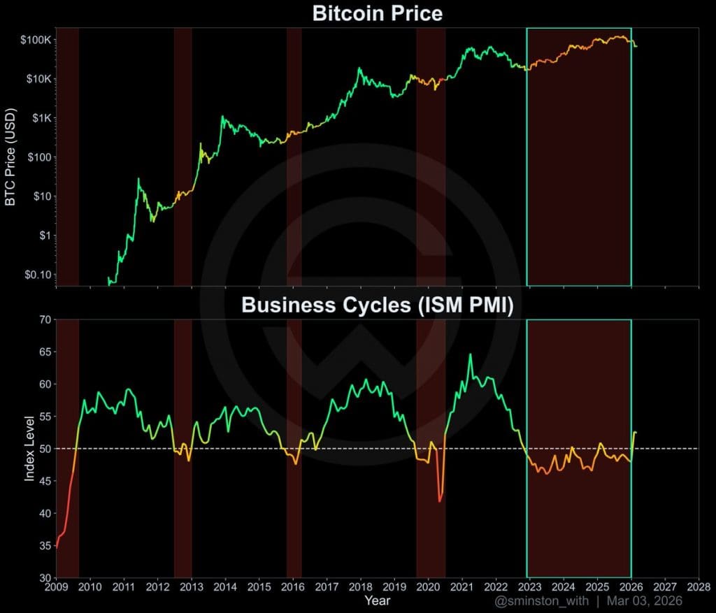 Wenn der PMI wieder deutlich über 50 steigt und die Wirtschaft erneut in eine Expansionsphase eintritt, könnte das laut dieser Theorie eine völlig neue Umgebung für Bitcoin schaffen. In einem solchen Szenario passieren meist drei Dinge gleichzeitig:
