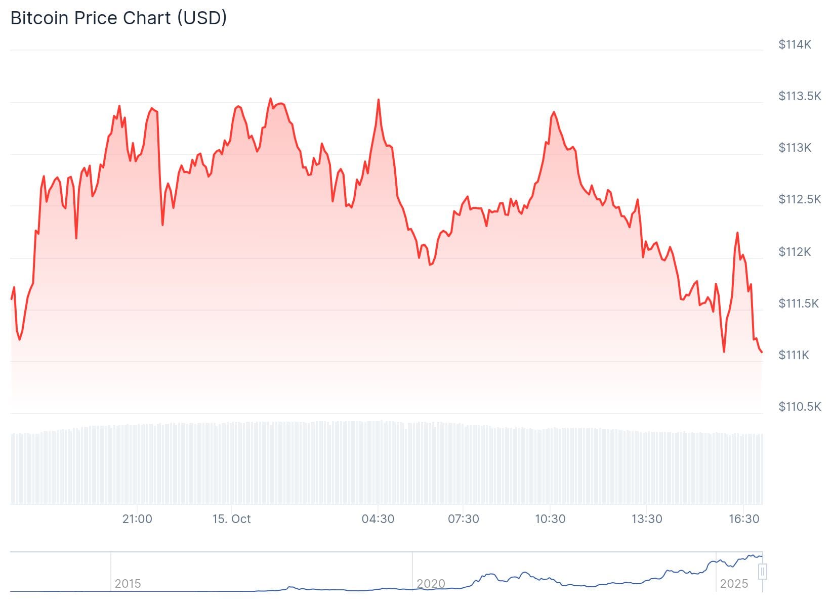 Zum Zeitpunkt des Schreibens steht der BTC-Preis auf der Kryptobörse Coinbase bei 111.161 Dollar. Auf der Kryptobörse Bitpanda kommt der BTC-Preis in Euro damit auf 95.422. Im Vergleich zu vor 24 Stunden steht BTC 1,10 Prozent im Minus.