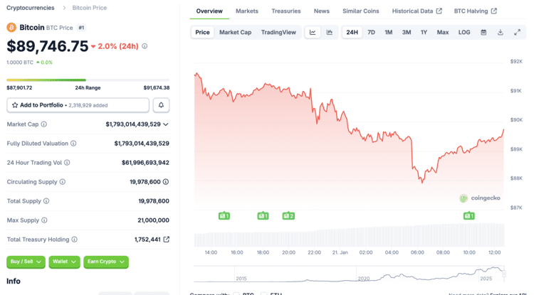 Bitcoin sackt unter 88.000 Dollar