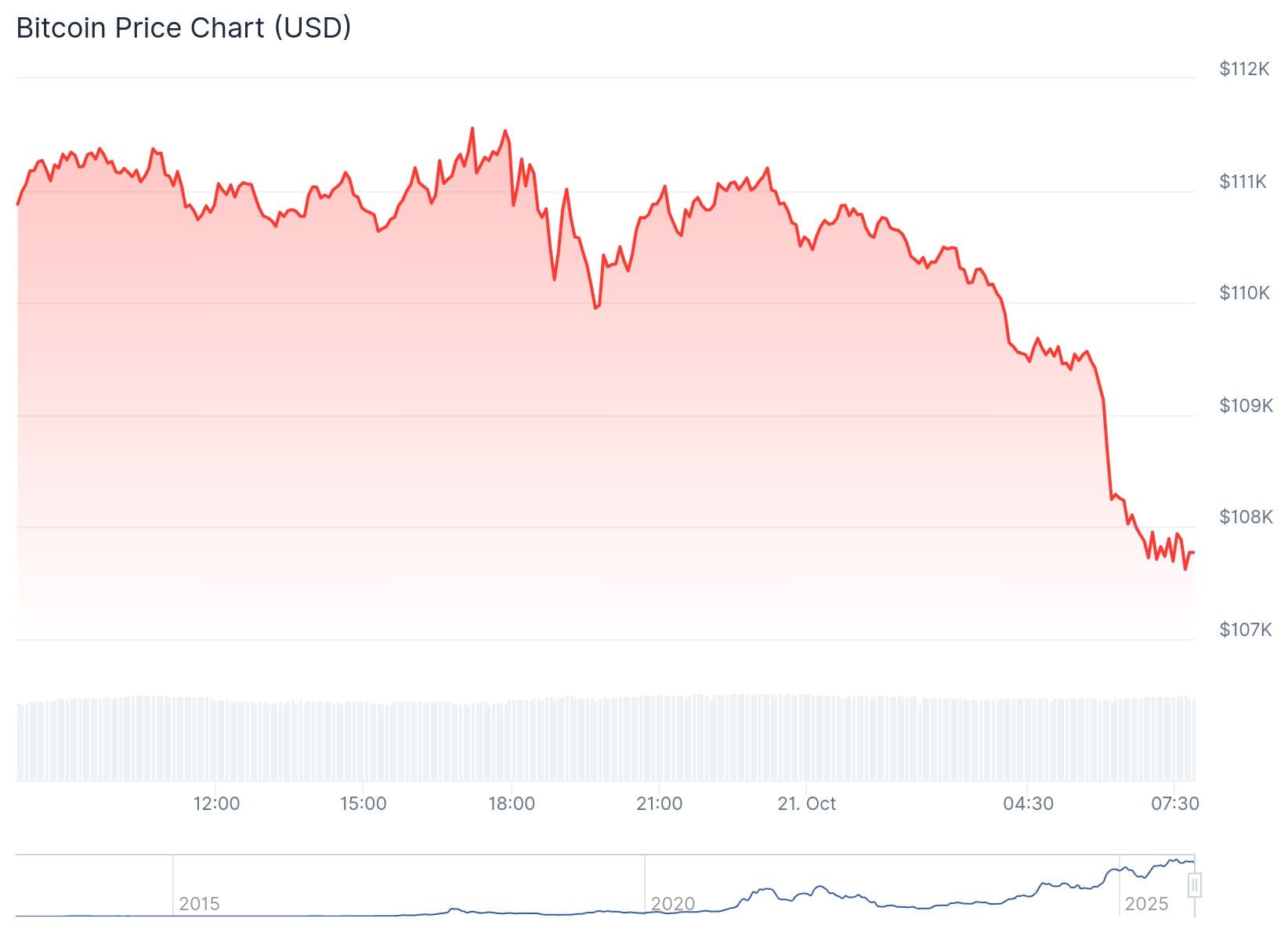 Zum Zeitpunkt des Schreibens steht der BTC-Kurs an der Kryptobörse Coinbase bei 107.988 Dollar. An der Kryptobörse Bitpanda kommt der BTC-Kurs in Euro damit auf 92.830. Im Vergleich zu vor 24 Stunden steht BTC 2,54 Prozent im Minus.