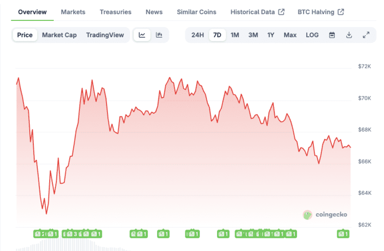 In dieser Woche setzte sich die Erholung zunächst fort, als der Kurs für einige Tage über 70.000 US-Dollar lag.