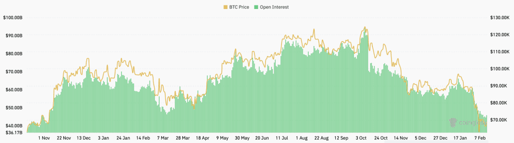 Donnerstag sank das Open Interest laut Daten von Coinglass auf nur 37 Milliarden Euro. Das ist das niedrigste Niveau seit zwei Jahren und die Hälfte weniger als während des Kursrekords im Oktober. Institutionelle Parteien haben auf den Futures-Märkten derzeit also außerordentlich wenige Handelspositionen eingenommen.