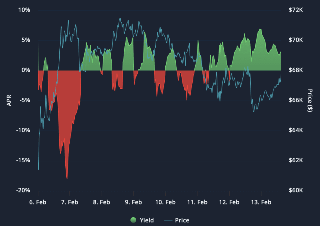 In letzter Zeit schwankte die Funding Rate meist unter dem neutralen Niveau von 12 Prozent, zeigen Daten von Laevitas. Daraus geht hervor, dass noch viel Unsicherheit herrscht.