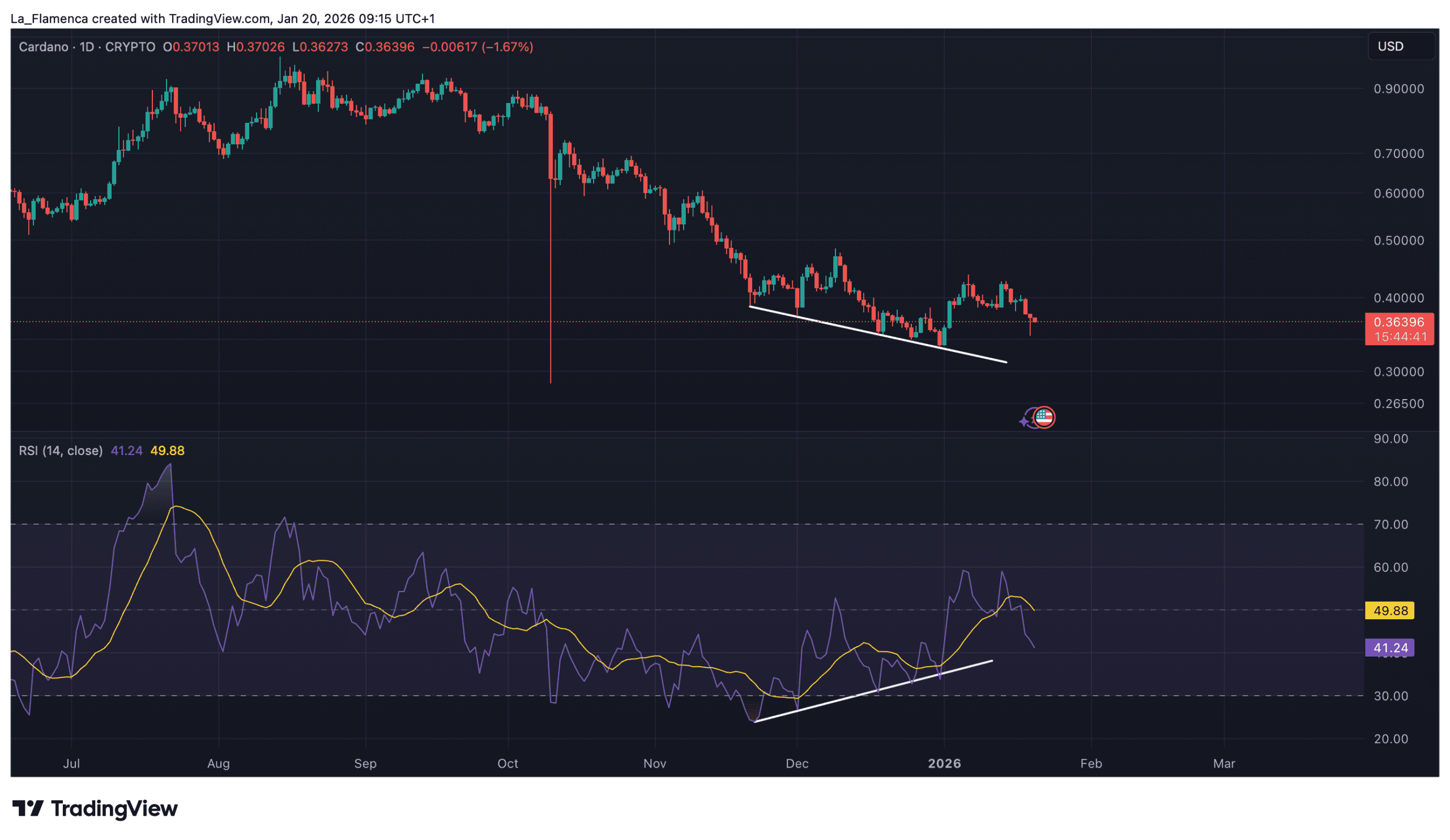 Zuletzt war eine klare bullishe Divergenz im Cardano-Chart zwischen August und Oktober 2023 zu sehen. Darauf folgte eine Kursrallye von rund 175 Prozent zwischen November und Dezember 2023.