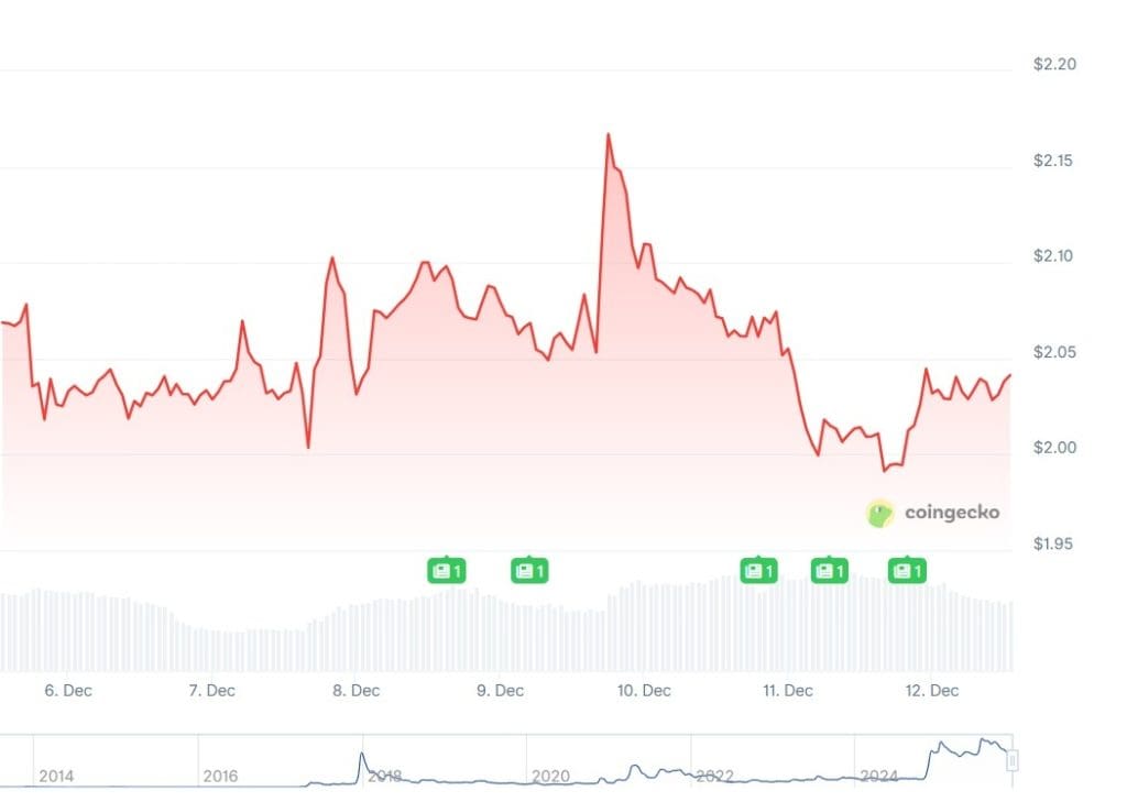 Unterdessen bleibt die Aufmerksamkeit rund um XRP selbst gering. Der Kurs fiel kürzlich kurzzeitig unter die Marke von 2 Dollar, doch neue Käufer blieben weitgehend aus.